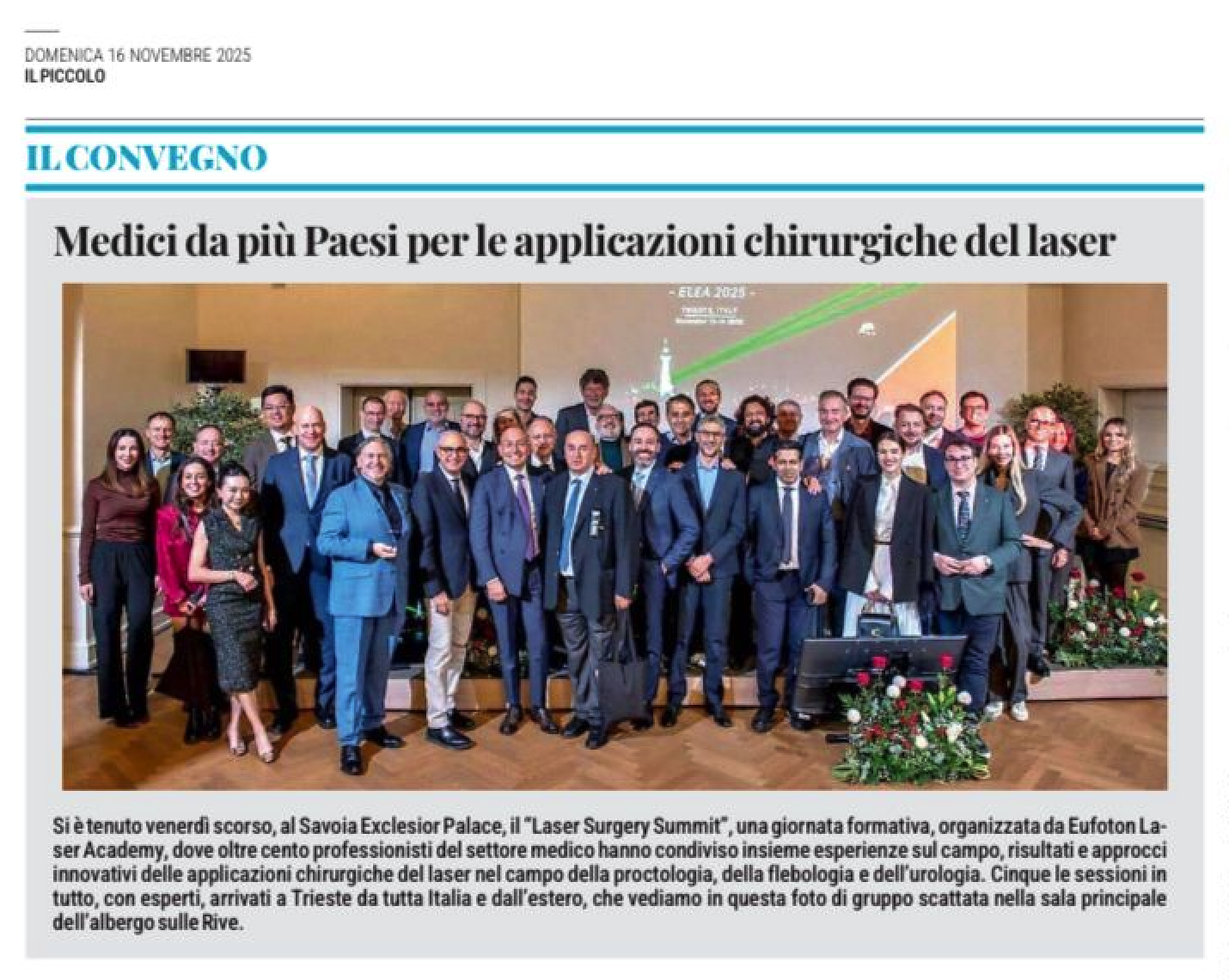 LASER SURGERY SUMMIT – ELEA 2025- Trieste November 14, 2025.